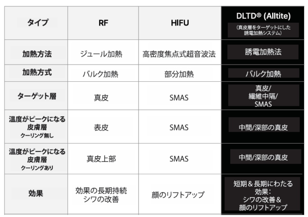 オールタイト(Alltite)は、DLTD®(Deep Layer Targeted Delivery)技術を用いて開発された、真皮深層からSMASまでを同時にターゲットにできる